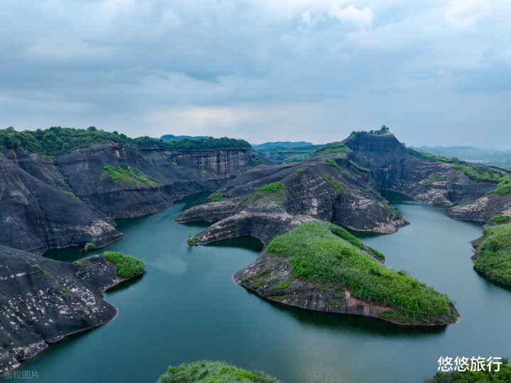 巨蜥湖翡翠秘境,澄澈碧绿湖水环绕赤红崖壁,走到湖边视野开阔。