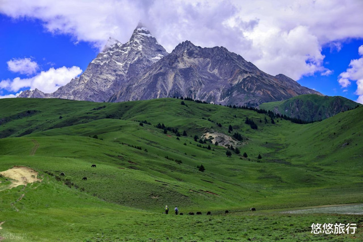 下则通村开阔的高山草甸,河流蜿蜒穿过,夏季开满野花。反穿格聂南线时雪山、草甸景观始终在前方,视野更佳。